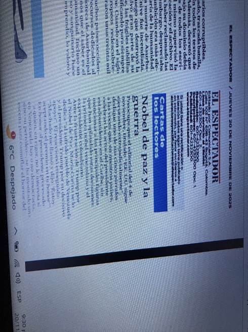 Preocupa que el editorial del 4 de noviembre, titulado “EE. UU. sigue ejecutando extrajudicialmente”, dedique uno –el último y el más corto– de sus cinco párrafos a las voces que, en nuestros países, celebran los actos del presidente estadounidense en el Caribe, sin mencionar a las principales figuras que han aplaudido estas decisiones: la primera nobel venezolana y el expresidente colombiano.